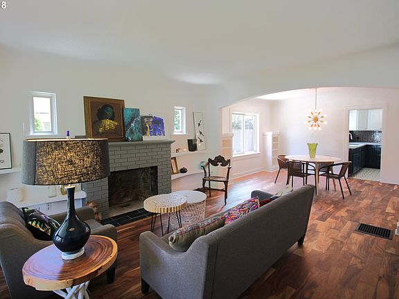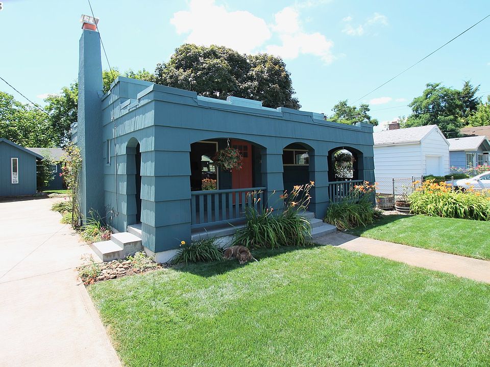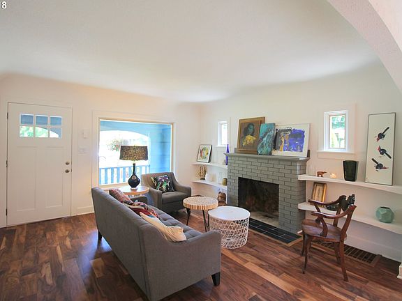 Super cute Spanish bungalow just feet from Mt Scott Park and Community Center. Large living & dining room with fireplace, new wood flooring, coved ceilings, and builtins. Updated kitchen & bath with quartz countertops, SS appliances and new tile. Two outbuildings in back, fully insulated and finished, could be a shop, living space or possible ADU. New roof, updated windows and utilities, A/C! Open House Sun 11/4 12pm-3pm! [Home Energy Score = 2. HES Report at https://api.greenbuildingregistry.com/report/hes/R196826-20180419]