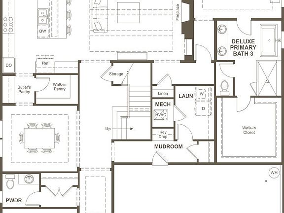 Walk-in pantryVaulted great roomWide entryTwo separate bedroom wingsGourmet kitchenPrivate studyMonogram appliances