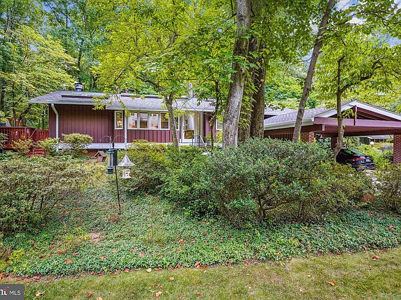 Welcome to this lovely mid-century modern Glenmore model home in the desirable Carderock Springs neighborhood of Bethesda. Located on a cul-de-sac and backing to parkland, this 5 bedroom/3 bath home offers the convenience of a main level entrance and privacy with a woodland view. The main floor is comprised of the primary bedroom and ensuite bath, along with two other bedrooms and a bath, all with cathedral ceilings. The entry foyer leads you to the pitched ceiling living room with built-ins and a wall of glass looking over the backyard. Skylights in the foyer, kitchen, dining area and baths flood the space with light. The recently remodeled kitchen has an eat-in area, high pitched ceiling and flows into the dining area surrounded by sliding doors to the large deck. The lower level consists of a spacious family room with sliding doors to the backyard and patio, fireplace, storage and laundry room, full bath and two more bedrooms, one with its own outdoor entrance and foyer which could be used as an office. A two-car attached carport and new roof further enhance this property.