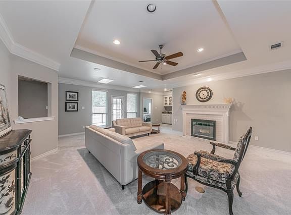 This Beautiful home offers traditional curve appeal, Huge living area has a gas log fireplace Sky light, Spacious Master Bedroom with vaulted ceiling, Luxurious Master bath with skylight and walk-in closet, Almost New high Quality Carpet, Kitchen has lots of cabinets and skylight, lots of windows provide ample natural light, mature trees, private backyard with Beautiful pool, Voluntary HOA.
