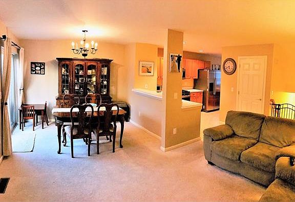 Beautiful complex located near shopping and highway. Open floorplan - New kitchen open to the living room. Kitchen has nice newer stainless appliances, breakfast bar, breakfast nook, & bow window. Dining room is spacious with new sliders to deck. Living room has new wood laminate flooring and a gas fireplace. Master bedroom is spacious with vaulted ceiling and access to bathroom. 2nd bedroom is bright and spacious. New carpets in bedrooms and all stairs and hall. Lower level has finished family room or perfect for home office with sliders to yard. There is in-unit laundry area.There is under-staircase storage and spacious garage with storage. New alarm system new window treatments. Complex has a club house - perfect for renting for parties, gym&wonderful in ground pool.Located in a great spot in the complex - steps to club house & pool.