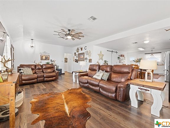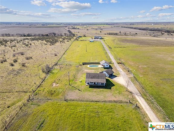 Take advantage of this perfect opportunity to own a beautiful 10-acre tract in HOLLAND ISD with countryside views! No restrictions! MANY recent updates made throughout home. Enjoy the open concept living/kitchen/dining space with farmhouse finishes! Upgrades include butcher block counter tops, center island, brand new appliances including 6-burner cooktop and double oven w /air fryer, new flooring throughout. Walk-in closets in all three bedrooms. Solar panels on home are PAID OFF and convey with sale. Property also includes a two-car detached garage next to the house and a backyard in-ground pool w/ adjacent 300sqft pool house w/ covered porch. Up the hill from the house is a 40x60 livestock barn w/ partial concrete floor and lean-to. Barn has an insulated tack water, water and electricity available, along with a 50-amp RV plug. Property is fully perimeter/cross fenced. Enjoy gorgeous country sunsets from your new homestead! All information deemed reliable but not guaranteed. Buyer and buyer's agent to verify all details.