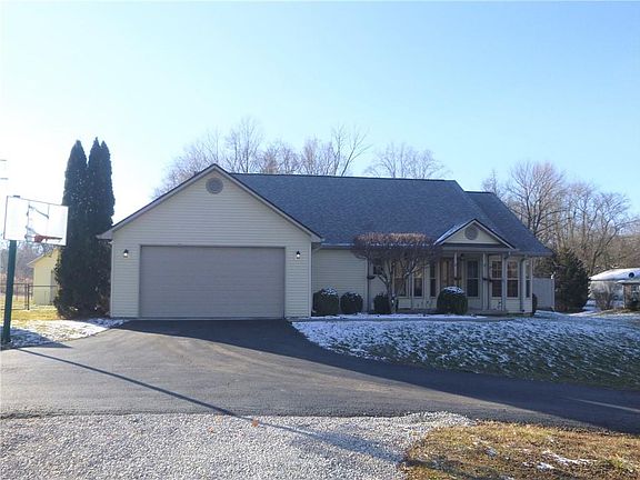 This lovely updated, split floor plan ranch on 1 acre, enjoys the privacy of a rural setting & convenience of nearby town. NEW roof, electrical, windows, heatpump, flooring, lighting, doors, paint...! Soaring vaulted ceiling in living room. Kitchen boasts hickory cabinets, LED lighting, island w/cherry cutting board top, pantry, new range & DW. Large breakfast room PLUS a formal dining with pretty bay window. Spacious office could easily function as a BR. Whole home humidifier & ceiling fans throughout make for inexpensive electric bills. Walk-in closets, full basement framed in, plumbed to septic and electrical professionally done. Outside you'll enjoy lounging by the in-ground pool surrounded by the fenced back yard.