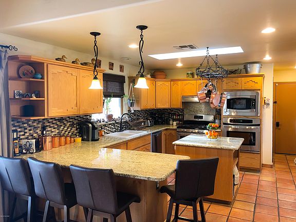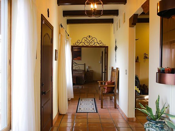 Enjoy city and mountain views, a new Pebbletec pool and lots of privacy at this gorgeous 8'' Rastra Block custom home situated on 5 acres. Kitchen features include custom built cabinets,granite countertops, stainless steel appliances, wall oven and microwave and a gas range w/ 5 burners, island and breakfast bar. Split floor plan with generous sized master bedroom and beehive woodburning fireplace and saltillo tile throughout gives this home a warm southwestern feel. Attached murphy bed in den does convey. New roof coating with 4 year warranty.
