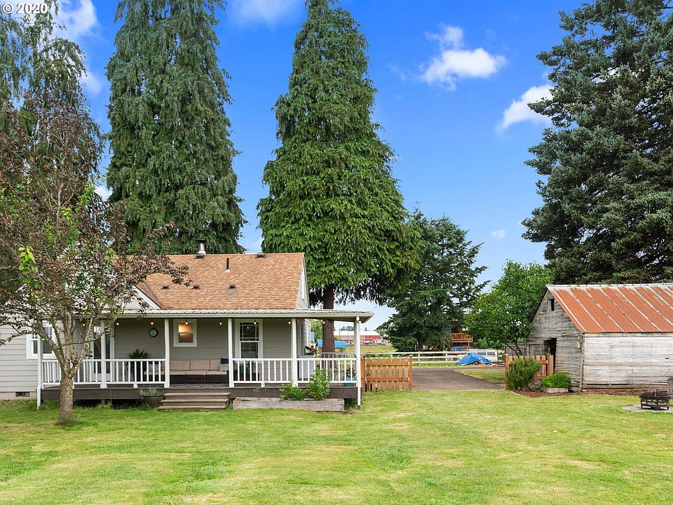 Charming Farmhouse on almost one acre of flat property! Enjoy the country w/ this move-in ready home. From the outbuildings to the garden beds to the chicken coop, you can have your own small hobby farm. Enter the home through a bright mudroom w/ laundry. Home flows to the large kitchen with eat-in dining, upgraded appliances and backsplash. Master on the main with full updated bathroom and access to the wrap-around porch. Living room has a beautiful woodstove that stays with the home.