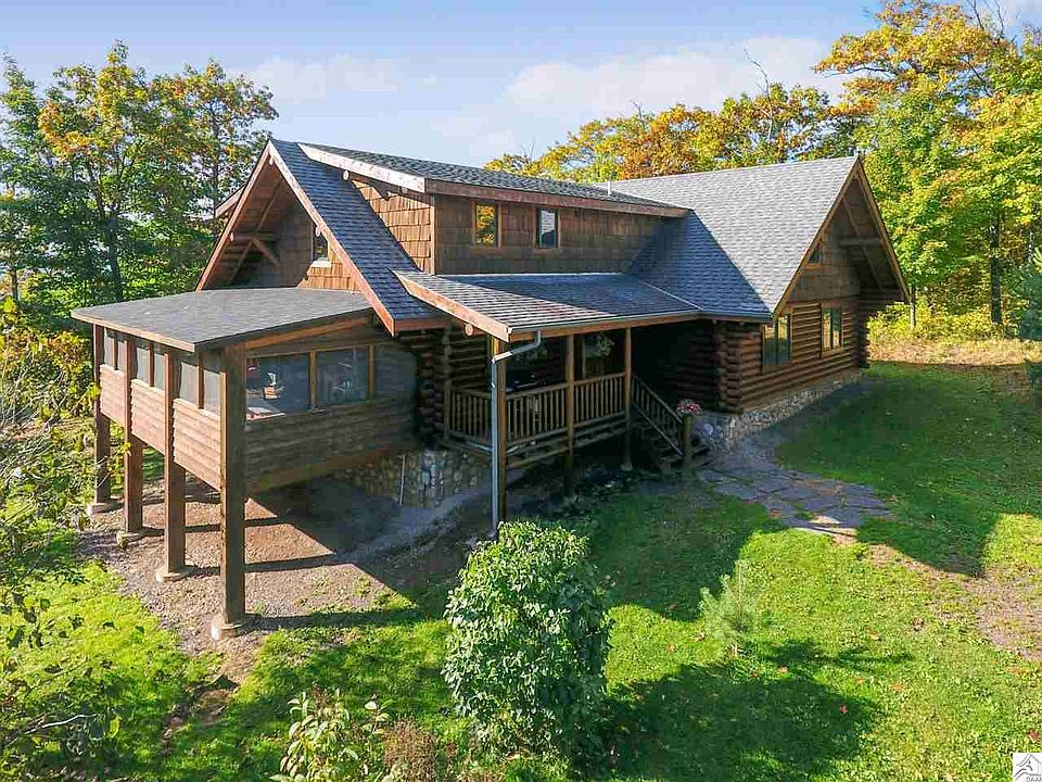Welcome to your peaceful retreat on 20 gorgeous acres! You will feel like you are on top of the world here. This 2002 Northwoods log home sits at the end of a private road amongst an Oak and Maple hardwood forest. Featuring vaulted ceilings, an open floor plan, a great room with a wall of windows offering breath-taking views of Lake Superior, hardwood and slate tile flooring, a Jotul wood stove to keep you cozy all winter and a large screen porch to enjoy in the summer! Upstairs there is an open loft with amazing views and a private master bedroom suite. There is a 3 car garage, a 1-story barn with two stalls, a large hay storage room, electricity and water. A great space for horses, llamas, goats or convert it to a work shop or studio. The land abuts state land on one side where there are trails and a fire tower. An easy 20 minute commute to Duluth or 10 minutes to Two Harbors. Excellent cell phone coverage and high speed internet. A truly unique & special find! See it today.