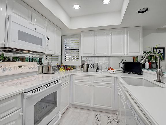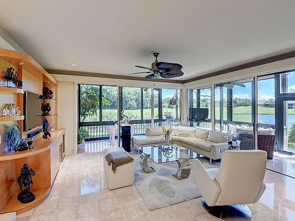 **SAVE $35,000 IF THIS PROPERTY IS CLOSED BY 12-31-23! THE JOINING FEE WILL REMAIN AT $90,000 AND THE $10,000 CAPITAL CONTRIBUTION IS ALSO WAIVED.*** Now available 1st floor 2 BR, 2 BTH condo with premium views of lakes, golf, and bridge! Immaculate, updated home features a white kitchen, newer appliances, stunning glass countertop. Marble flooring throughout the living areas. Both bathrooms have updated vanities. Additional features include a built-in pantry, a/c 2022, a walk-in closet in the primary bedroom,2nd bedroom has 2 Murphy beds with full-size mattresses. The wrap-around patio has impact windows and a door. The beautiful views complement the lovely interior. Deeded covered parking. This is a tropical paradise!!! FOR THIS HOME ONLY *$10,000 Capital Contribution effective for all purchase contracts dated before 12/31/2023. ** Joining Fee will be increasing to $115,000. All contracts (no matter what the closing date) will be grandfathered in with the $90,000 Joining Fee as long as the purchase contract is registered with the Club's Membership team by 12/23/23.