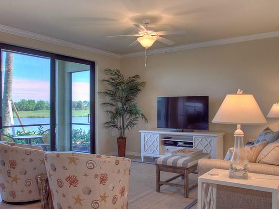 Bright and open first floor Brookside Condo . Located in the gated River Strand Golf Community ,this completely Turnkey ,updated tastefully decorated unit is available for short term,long term or as a seasonal rental. Both bedrooms have a Queen size bed and there are 2 full bathrooms .There is sleeper in the Living Room ; Flat screen T.Vs in Living room and Master WiFi and cable included. The Golf and amenities transfer is a fee of $347.75per reservation for 1 couple that includes Golf (you only pay cart fees) ,tennis ,pools .spa and fitness. Sorry no pets . Seasonal rentals include ,Cable WiFi,phone and an Electric cap of $75.00 Please call for off -season rates . Booked Jan-March2021