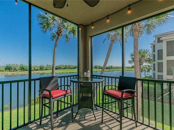 TURNKEY,FULLY FURNISHED COLONADE PLAN! This seldom available, sought after end/corner condo is surrounded by conservation and views of Sanctuary Hole #8 and the Manatee River! This 2 bed 2 bath home features a den currently furnished with closets and a king bed, open plan, crown molding, porcelain tile, hurricane "high-impact" glass windows and doors, granite countertops, solid wood cabinets, stainless steel appliances and an outside storage room for all your sporting equipment. Closet organizers installed in all the bedrooms to make the most out of the ample storage this home has to offer. This favored unit also has a separate laundry room with upgraded front load washer and dryer. You will enjoy resort living at it's finest including a 27-hole Arthur Hill championship golf course, 9 lighted Har-Tru tennis courts, on-site tennis & golf pros & pro shops, the Clubhouse features casual/fine dining; banquet/wedding facilities, a bar & grill room, billiard room, card room, library, conference room, fitness center, heated swimming pool, heated river ride pool and jacuzzi, individual neighborhood pools, a 2nd community/fitness center, heated pool, jacuzzi, pickle ball courts, dog park, playground, dock and lake. You can relax with the lock and leave it convenience of this man gated community and Nexia security available for your smart phone. Location... Shopping, beaches, theater, concerts, farmers markets, airports all within 30 minutes!