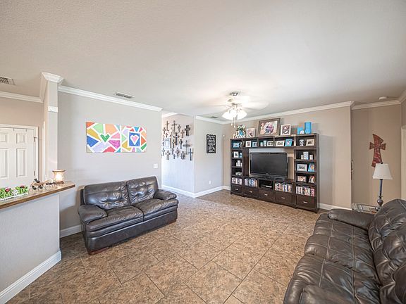 Wonderful 3 bedroom 2 bath home in quiet Cul De Sac with quick access to grocery, shopping, golf and more! Large attic storage, 2 walk-in closets, hot water replaced 1/2020, tile throughout. Mature landscaping, automatic sprinkler system. Large backyard with covered patio and 12x20 workshop with electric, AC & cable for the perfect Man Cave or She Shed!