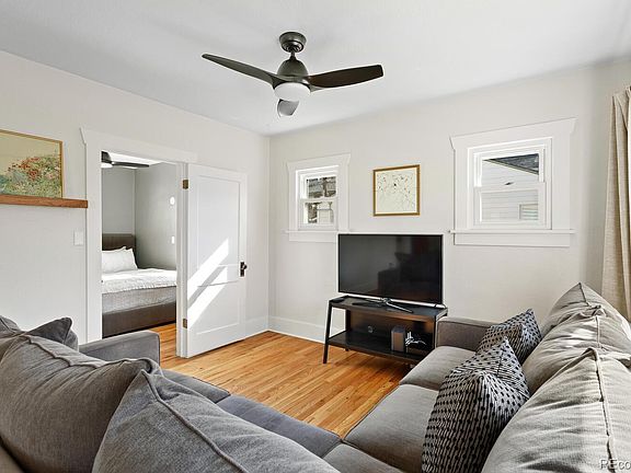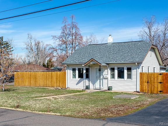 Welcome home to this completely remodeled, single family stunner set on a large corner lot in desirable Wheat Ridge. Bright and open floorpan with spacious living room featuring floating shelves, large windows and ceiling fan. Tastefully updated kitchen with quartz countertops, white cabinets, sleek white appliance package, subway tile backsplash and designer fixtures and hardware. Dining room is conveniently adjacent to the kitchen. Main bedroom with ceiling fan and access to the remodeled bathroom updated with tile flooring, vanity and shower. Second bedroom and laundry space complete this immaculate home. Refinished hardwood floors throughout the main level, newer interior and exterior paint and newer heaters. Newer privacy fence encloses the large yard space and private back patio perfect for outdoor dining throughout the year. Oversized 2-car garage built in 2018 ideally sized for storage. Additional off street parking spaces and large driveway. Amazing, central location conveniently located close to shops, parks and restaurants. Easy access to Edgewater, Sloans Lake and Highlands, Downtown and a straight shot to 6th Avenue to head west to the mountains. Ready for move in and awaiting new owners to make this home their own.