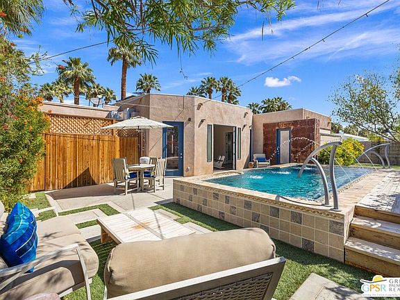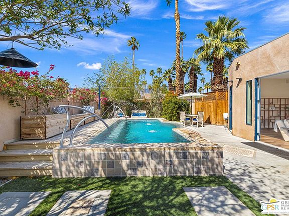 WOW! Check out this FANTASTIC opportunity in Tamarisk Heights that is an ideal match for those seeking CONTEMPORARY LIVING in South Rancho Mirage! Located within minutes to restaurants, retailers, and multiple country clubs, this home has been FRESHLY STYLED UP! Key highlights include tall ceilings, clerestory windows, open floor plan, contemporary finishes and tile flooring throughout, great separation of bedrooms, and an ultra-private south-facing backyard that includes a private saline pool, mature landscaping, and views of the surrounding mountains! Fresh interior paint plus recent system upgrades including a HVAC unit and tankless water heater. No land lease and no HOA fee, either! Custom-designed front door and formal entry with clerestory windows work to create a scene of magic that continues into the grand Great Room that features tall ceilings, eight clerestory windows, mountain views, and three sets of doors that open to the south-facing backyard that is anchored by a refreshing pool with custom water features. Adjacent kitchen, which looks into the Great Room, includes contemporary cabinets, stainless appliance suite including gas range with pot filler, and an oversized detached island with stainless steel farm sink and built-in counter bar ideal for both casual living as well as entertaining! This IS the floor plan for people who love to entertain! Primary Ensuite has been styled up with a fireplace, large walk-in closet, and private contemporary bath with dual sinks, quartz counters, large walk-in shower with four showerheads, and a separate jetted tub. A true SPA experience! On the other side of the house is Junior Ensuite Two with clerestory window, access to the outside, and a private bath that includes a walk-in shower. Separate powder/guest bath, too! Don't miss out on this incredible opportunity in Tamarisk Heights!