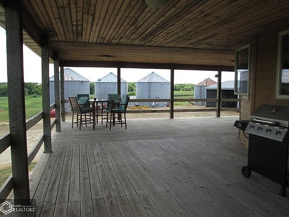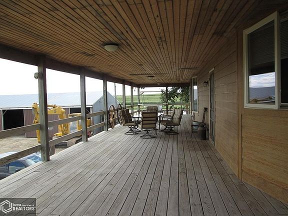 Spacious ranch home with ample room for entertaining. Beautiful wood floors throughout most of main level. Master bedroom has office room plus large master bath with newer walk in shower. Main floor laundry was a must in this home. Sellers have enclosed the west side which was deck and have added a great dining and TV area that overlooks neighbor's pond. This home allows you to enjoy the fresh outdoor air while on the covered decks or patio. The basement has 3rd nonconforming bedroom, family room with bar, & bath - great space for entertaining or for the family. Basement also includes sump pump & radon system. Shop & outbuildings included. Grain bins may not be included. If its time to be in the country - call a Realtor today for your appointment.