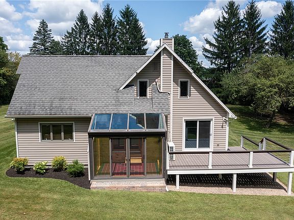Don't miss out on this stunning country home privately nestled on 5 acres in the Livonia School District. Meticulously cared for with one owner, this home has it all. On the first floor are 3 bedrooms, including a primary suite and another full bathroom. The kitchen and living area have an open-concept layout that flows out to the back porch and sunroom. Upstairs is a large living space currently used as a living room. Downstairs is finished, and one room is used as a game room with a ping pong table that stays with the home. The other room was used as a workout area. Tons of storage space in the basement and in the attic. Enjoy coffee on those sunny mornings on the beautifully done Trex deck (2019) or in the sunroom watching the wildlife in the backyard. Well-maintained Beautifully landscaped yard with well-groomed trails throughout the property. A 2-car detached garage including a bonus area upstairs has the potential to be more than just storage space. Don't miss out! Delayed Negotiations Monday, July 29th at 5 PM.