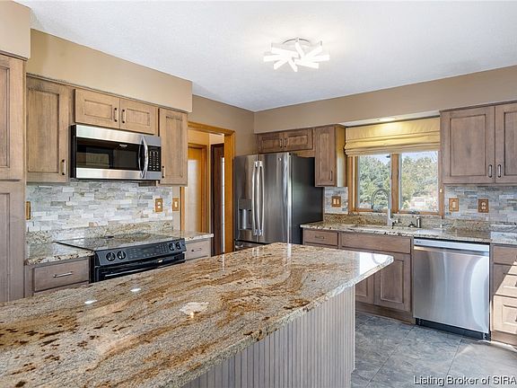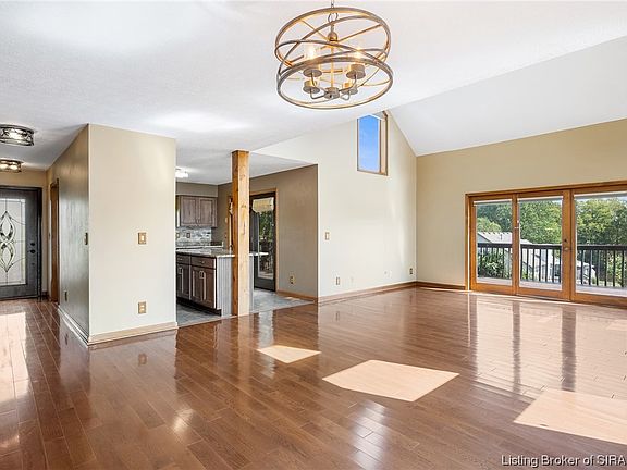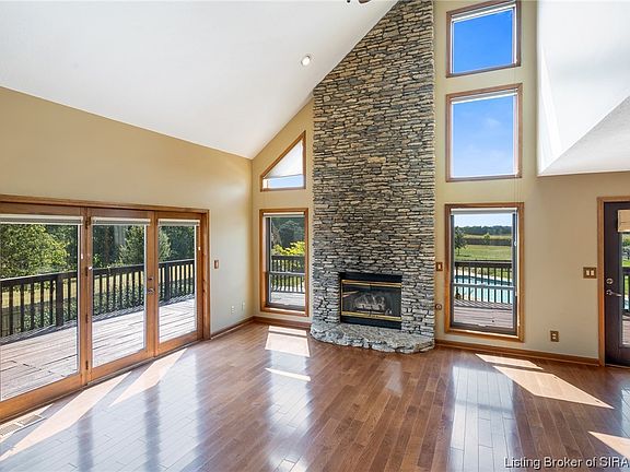 2+ acres of paradise in Charlestown, IN...with a 24' x 46' outbuilding!! This unique property has views, space, privacy and is only a few minutes from the 265 bridge. Floor to ceiling windows, flagstone fireplace, indoor-outdoor living spaces, and a wrap around deck overlooking the inground pool are only a few of the highlights. Newly remodeled kitchen with access to the deck opens to the great room for an open plan living area that easily flows to the beautiful outdoors. First floor primary with en suite bathroom has a dramatic vaulted ceiling and windows. The walkout/daylight basement offers extra living space, a den, and possible 4th bedroom, as well as a bathroom. Fully fenced back yard provides privacy for the pool and hot tub area. The large 24' x 46' outbuilding/pole barn is perfect for the hobbyist or gear head and can accommodate 4+ cars. Updates include: new roof in August 2023, new windows in great room and primary, newer furnace and water heater.
