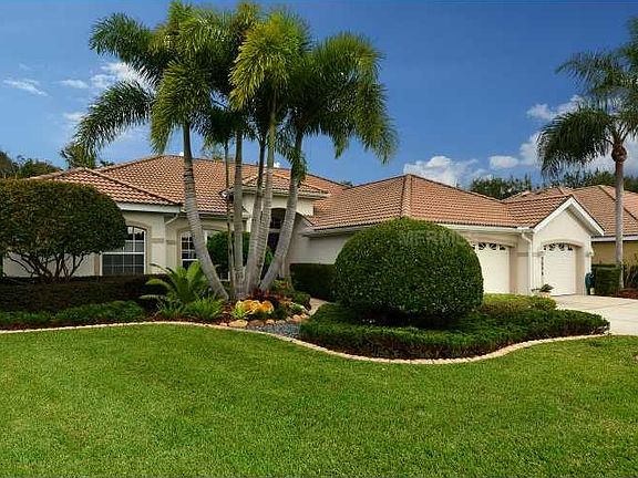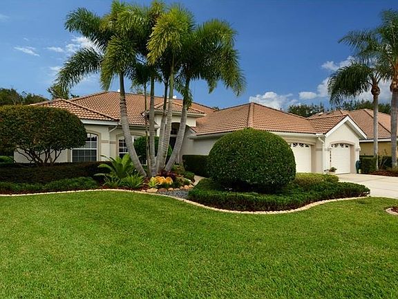Beautiful great room model located within desirable Arbor Lake Estates @ Mote Ranch. This home boasts three bedrooms plus den, two baths, spacious kitchen and great room and a huge three car garage with tile floors which is air conditioned if desired. A large saltwater pool with paver decking is surrounded on three sides with a "secret garden", landscape curbing and night landscape lighting creating an ideal oasis and perfect privacy. No neighbors out your front door, just a lovely pond lined with signature palms. The upgrades are extensive including neutral tile flooring in all primary living spaces, high ceilings, crown moldings, indirect lighting, custom window and light treatments, newer double ovens, and more. Desirable Mote Ranch enjoys a premium location west of I-75 and just north of the University Parkway corridor. A large community heated pool and access to the Braden River makes kayaking or canoeing easily accessible for residents. Reasonable HOA fees and no CDD fees. Hurry....you won't want to miss this fantastic home!