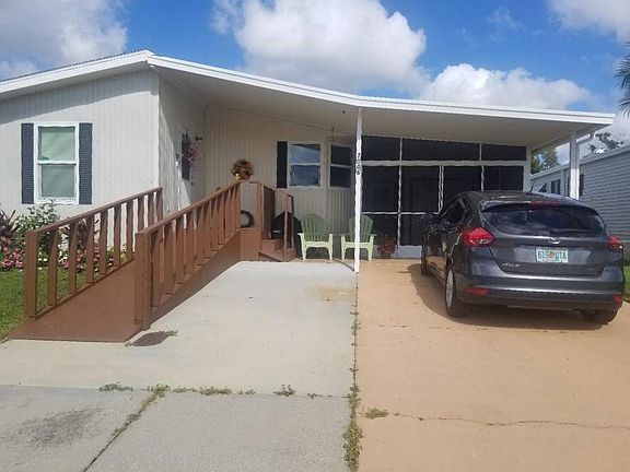Welcome to this attractive and cozy 2 bedroom, 2 bath home. It features a 2016 refrigerator, 2016 stove and a microwave. It offers a washer and dryer which is only 3 months old. It has a shingled roof and has vinyl siding as well as a screened in porch, Florida room and an attached storage unit. The floors are only 3 years old are carpeted and some laminate. This home has central air which is 2 years old. This home is very well maintained with many upgrades. The lot rent is $750.00 Located in Ridgewood Estates in a 55+ community this lovely park offers clubhouses, pools and a gated entrance together with shuffleboard, water aerobics and special events in the community center. This park is close to restaurants, grocery stores and shopping areas. Call me to view this well priced and amazing home.