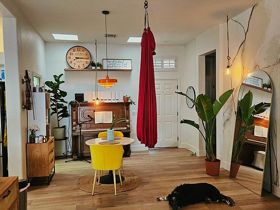 Beautifully renovated home featuring a bright, open floor plan balancing comfort, convenience, and style in a peaceful and well-established community. Remodeled chef's kitchen showcases an upgraded appliance package, soft-close cabinetry, a touchless faucet, and a designer backsplash. Both primary and guest bathrooms have been tastefully updated. Additional home upgrades include new flooring throughout, a water softener, whole-house filtration system, new A/C unit, and an air purification UV-C light within freshly cleaned ducts. Relax in your private backyard oasis complete with a covered patio, garden area, and an extended multifunctional side yard. Moondance residents enjoy lush greenbelts, scenic walking paths, and a sparkling community pool and spa for year-round relaxation.
