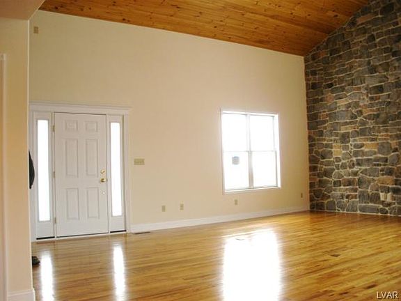 Are you searching for a UNIQUE Home.. situated on almost 5 Acres..with gorgeous views.. and just 15 minutes from Allentown..if so..this is the home for you! Upon entering the front door, you'll be greeted by a stunning, 2 story floor to ceiling stone wall in the open great room and dining room. Great Tree of Life propane gas stove and hardwood flooring. Bright open kitchen with stainless steel appliances, granite counter top, double bowl sink and bar height counter top with Hickory wood cabinets. The ornamental hay loft ladder is approximately 90 years old and extends to the loft. The master bedroom suite is on the first floor, with plenty of closets for storage. The master bathroom is tiled, 2 shower heads and double bowl sink with corian.There are 2 bedrooms with a Jack & Jill Bathroom on the second floor along with a loft. Brand new family room with full bathroom (10/2014) on the lower level, could be used as 4th bedroom. Oversized 3 car garage with two openers & Large Trex Deck.