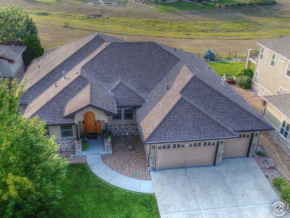 Backing to beautiful mountain sunsets and open space! This gorgeous custom ranch home has plenty of room for everybody! Quality finishes with knotty alder door & trim, cherry hardwood, Tharp cabinets & slab granite in gourmet kitchen. Formal dining room and office off the entry, LG master w/ private access door to covered patio. All bedrooms feature walk in closets. jack & Jill on the main, 2nd master suite in basement with an add't laundry, rec room w/bar.Pool/Clubhouse,High Plains STEAM school