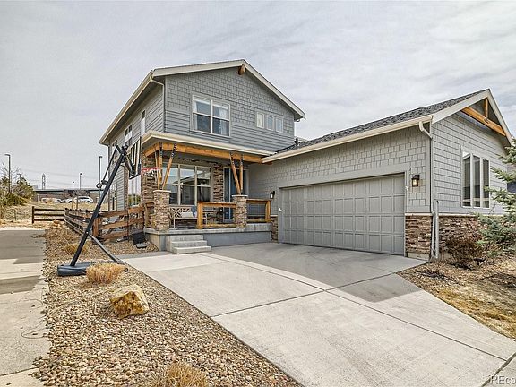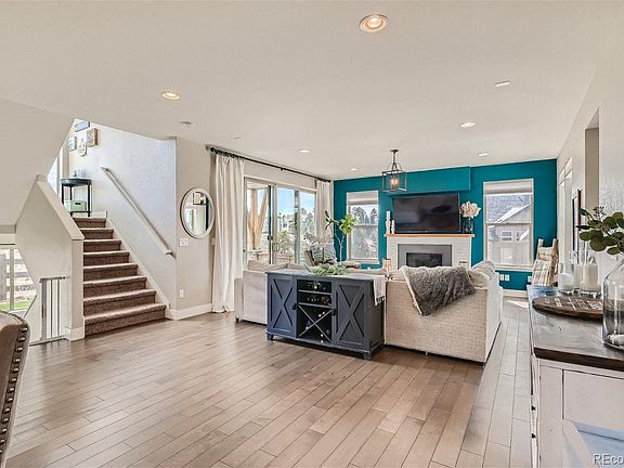 A stunning home in the highly sought after Tallyn’s Reach neighborhood! The west facing front porch greets you as you arrive. This home features 4 bedrooms, 4 bathrooms, loft, main floor office/flex space, open floor plan, large eat in kitchen and finished basement. The large double glass sliding doors in the family room lead to the covered patio and the fully fenced backyard with new turf. Another private patio located on the south side of the house includes the hot tub! House comes with solar shingles (owned), tank-less water heater, built in speakers (inside and out) and security system including cameras at front and back of house. Newer clothes washer and dryer and dishwasher (2021) and new top down honeycomb blinds on the main floor and primary bedroom (2022). The community HOA includes neighborhood pool, clubhouse, walking paths, and tennis courts. Great location with easy access to DIA, I-70 and E-470. Close to shopping dining, and entertainment. This one is a must see!