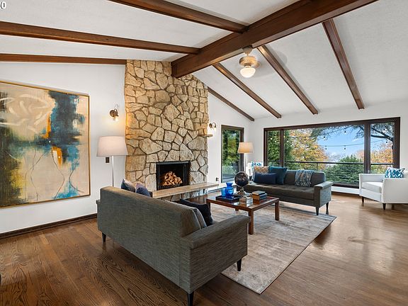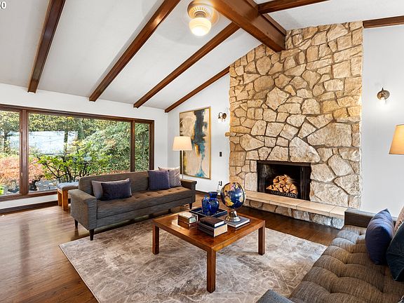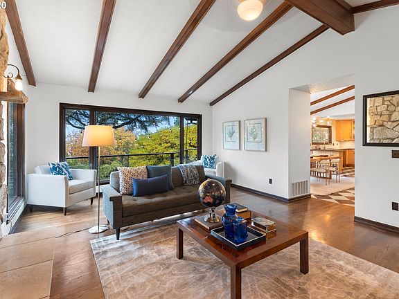 New interior paint and carpet! Rare mid-century w/exceptional views of the Willamette River & Cascades. Expansive living room and kitchen w/vaulted ceilings. Large 3 bdrm, plus office (or 4th bdrm conversion). New 2nd floor deck allows unobstructed views. Income potential w/flexibility to rent garden level as separate unit w/kitchenette. Downstairs produced $1,500 in monthly rental income. Exceptional privacy indoor & out, yet conveniently adjacent to I5 & Barbur. 5 minutes to downtown Portland.
