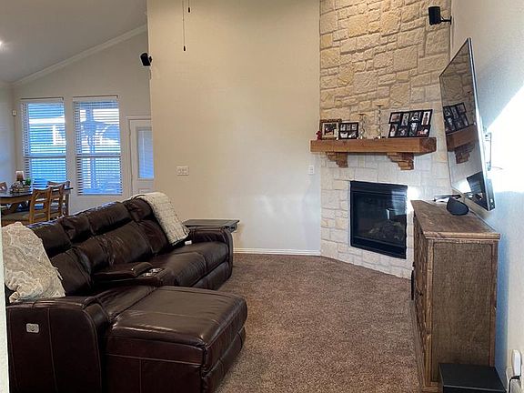 Stunning open concept with soaring ceilings and lots of upgrades including crown molding, can lighting throughout, island and ceiling high fireplace backsplashes, granite throughout, sequestered master with a jetted tub, walk in shower, and a large walk in closet! The backyard features an extended patio area and separate slab out back that is ready for a storage building!