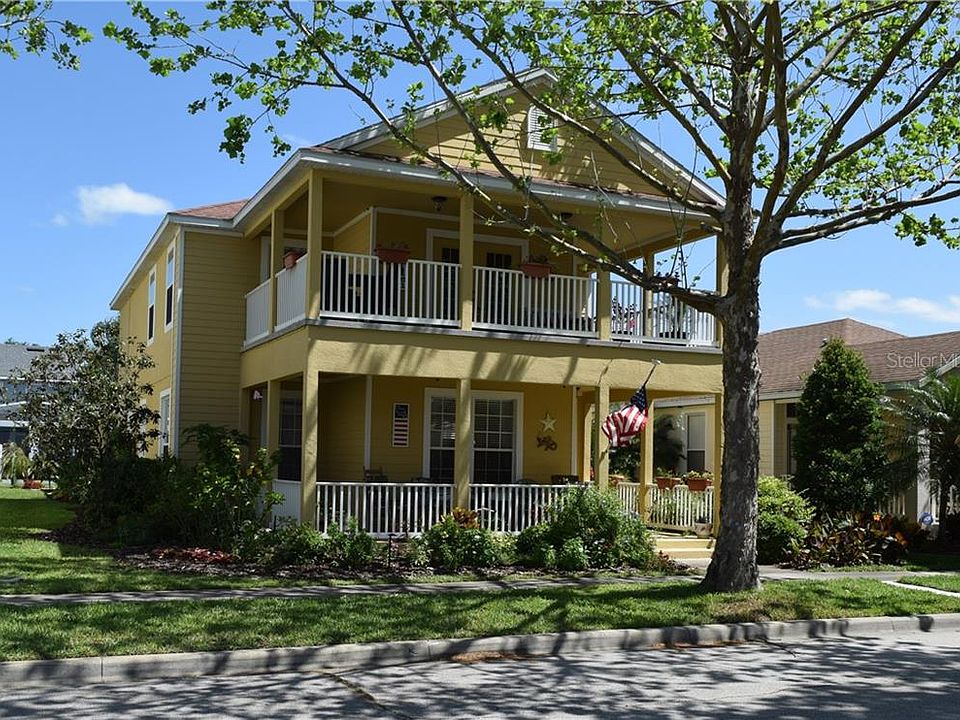 Make your home in Harmony in this fabulous multi-functional home. From the moment you enter you realize this home is special as you gaze at the living room and see the French doors to the screened lanai. The very functional kitchen with breakfast bar and pantry adjoins the family dining area. The owners use the formal dining room as an office, music room. Open the French Doors and discover the screened lanai that wraps around to the back of the home and is ideal for outdoor dining, or just relaxing and watching your favorite movie on the large screen tv. Upstairs another large balcony awaits your enjoyment. Your king size master bedroom with walk-in closet and en-suite bathroom with soaking tub, dual sink vanity, and oversized shower. Two more queen size bedrooms, a hall bathroom with linen closet, and coffee bar area with shelves is also ideal for a computer station, study/homework area. An attached 2 car garage in back of house with overhead shelves. An easy walk to the Harmony school, the Lakefront park is just around the corner with soccer field, splash pad, basketball ball, pavilion, volleyball, fishing pier, canoes, kayaks, pontoon boats. Walk to the pools, dog parks, golf course, town center, restaurant, fitness center, neighborhood parks, hiking trails. NOTE: Stated Property taxes includes the amount stated as CDD fee which is paid to Osceola Tax Collector in annual tax bill. All measurements are deemed accurate but not guaranteed, buyer assumes responsibility for verification.