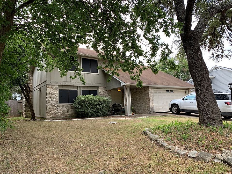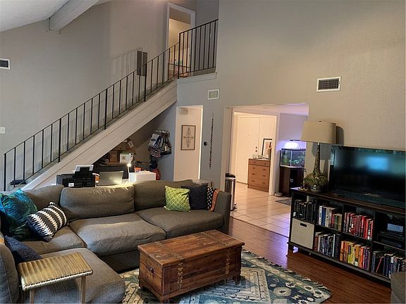 Spacious 3/2 with open floor plan. Laminate flooring on the ground floor; large vaulted ceiling in living; master down; Large trees and shaded backyard. This is a very comfortable home in the right location!