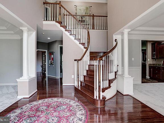 This is one stunning home! It features 9' ceiling main and upper levels, huge gourmet kitchen with island, granite, 42" cabinets, five burner cooktop, lots of eat in space, tray/coffered ceilings, new carpet, hardwoods, plantation shutters, dual staircase, etc. Primary bedroom is enormous and also has a sitting room, 2 closets and primary bath has soaking tub and separate shower and 2 sinks. There is a main level office (could be 5th bedroom), crown moulding, butler's pantry, family room off kitchen, formal dining room and formal living room. The lower level features a huge rec room - bar and chairs convey, wine fridge, wet bar, media room with tiered seating, surround system conveys, workout room/office, gorgeous full bath, huge storage area, underground sprinkler system and walkup steps to back yard.