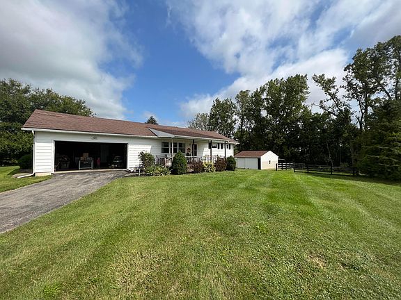 Dreaming of Living in the Country in Highland School District? Then check out this 3 -4 bedroom, 2 full bath ranch home with walk-out basement. Formal Living Room~ Eat in Kitchen/Dinette Area~ 3 bedrooms, 1 full bath & Laundry area with handicap accessibility on the main level. The partially finished walk-out basement offers an additional bedroom, 1 full bath with living area , plenty of storage and a ''Summer Kitchen'' for canning and entertaining that leads to a patio with retaining walls. Start your own mini farm utilizing the 20x22 Pole Barn with stalls and partial concrete floors~ & Fenced in pastures. Enjoy panoramic country views on your covered front porch or back deck! This amazing property is partially wooded and has rolling topography with very mature trees and landscaping.