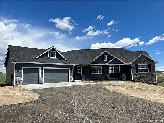 New Custom Home **End Of April Completion Date ** Well allows for 4 large animals** No Metro or Special Taxing District** Country living at its finest with all the amenities so close by. *** 3 miles from the Growing town of Elizabeth** You will not be disappointed with this nearly finished home on 10 acres, secluded in the Willow Creek Subdivision. Upon entering the open floor plan, you will feel the serenity of what this home has to offer with the abundance of natural light throughout the home and the majestic views. The kitchen is a baker’s dream with its large kitchen island. Great room is opened to the gourmet kitchen with a stone fireplace and 12’ ceilings. Master bedroom is tucked away from the other two bedrooms with its own master bathroom. Conveniently the drop off zone, mudroom and laundry room are located upon entering the home from the oversized 3- car garage, which is insulated and drywalled. Quartz countertops throughout and popular large plank flooring in kitchen, breakfast nook/dining, hallway, great room and entry. Room for expansion in the unfinished walkout basement with 9’ ceilings, which also share the views of Willow Creek and has the rough plumbing for a future bathroom. Come make this your dream home and capture the wildlife throughout the year on your back deck! There is a temporary fence by the driveway that will be taken down upon completion of the home. You will not be disappointed with these views and the location!! *** More pictures to come. *** Room for future in-law quarters in full walkout bedroom and Barn/Garage for all you toys and animals.