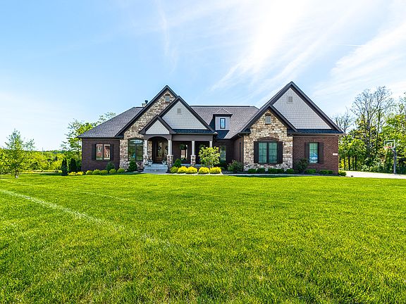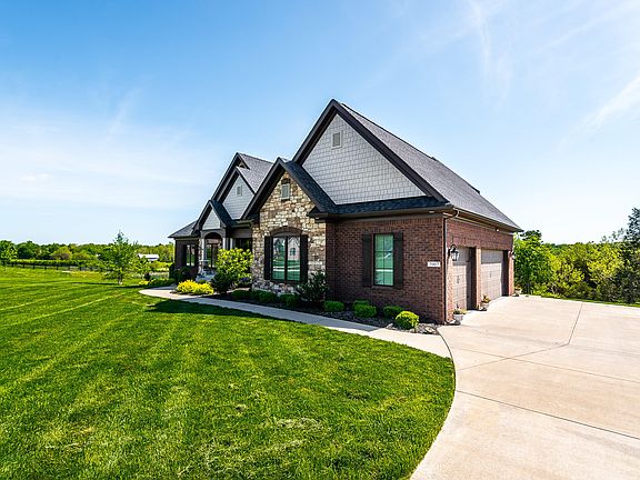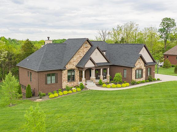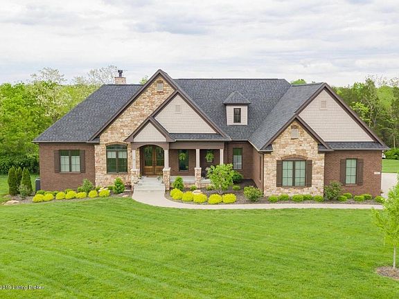 Exquisite design meets elegance and amazing upgrades here in this stunning nearly new custom built ranch nestled on 3 private acres in Highly sought after High Grove Development - Crestwood,Ky! This incredible home showcases all the lux features you deserve from the coffered soaring ceiling, to the rich hardwoods, to the exquisite moldings and built-ins, to the custom wood-burning fireplaces, to the open floor plan, it's all here! If the designer kitchen with it's custom cabinets and oversized island and delicious granite aren't enough to win you over, get ready for the fireplaces in this home that make a statement and make you feel like you are in a lodge! The overall space here is glorious from the luxurious master suite complete with all the appointments you'd expect including a view of