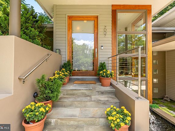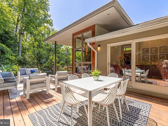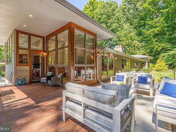 New Listing! Redesigned, rebuilt and reimagined by local architectural firm, Archeon Architects. Sited on over 3/4 acres on a quiet cul de sac in close-in Bethesda, this 5 bedroom, 4.5 bath mid-century modern home is uniquely beautiful boasting loads of light with skylights and floor to ceiling windows overlooking the serene backyard throughout the main floor and plenty of living space and storage. The expansive kitchen features a large, granite kitchen island, top of the line stainless appliances and lots of natural light with a beautiful wall of windows. The dining room and living room feature floor to ceiling windows, transoms, gorgeous wood trim and French doors leading to the Ipe wood deck overlooking the expansive private yard. The home's expansion also includes a new primary bedroom offering views of and access to the backyard and a beautiful ensuite bathroom with a large shower and soaking tub, and two large walk-in closets. The first level also features skylights for natural light, a bedroom with an ensuite bathroom and two additional bedrooms sharing a hall bathroom. The walk-out lower level leads to a patio with beautiful hardscaping and landscaping. The lower level boasts a large family room with high ceilings and a gas fireplace, a 5th bedroom, 4th full bathroom, and plenty of storage. This home is move-in ready - just gorgeous! Whitman HS, Pyle MS and Burning Tree ES Cluster. Yes, you can have it all!