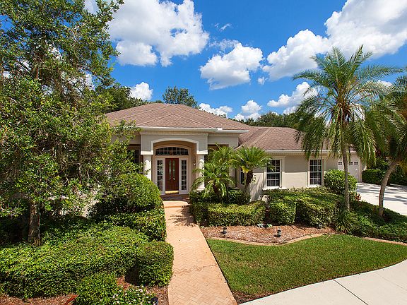 Situated on almost two acres offering total seclusion, privacy and backing up to the Braden River. Enjoy resort living in the extended lanai with recently resurfaced heated pool and spa, outdoor kitchen, outdoor shower and covered entertaining areas. This one level 4,599 sq.ft. custom built home offers a functional open floor plan with generous sized rooms. The great (24x24) room features a gas burning fireplace and an entire wall of glass French doors to the pool area. Huge kitchen with center island, breakfast bar, ample 42" cabinetry, built-in buffet server and large walk-in panty. The dinette is large enough that can function as the main dining room and the formal dining room can be used as a den/office. The huge bonus/media room features French doors to the pool area plus half bath. Retreat into the massive master suite with sleeping chamber, two separate walk-in closets and private bath with whirlpool tub & walk-in shower. Other features include: two additional bedrooms with private baths, oversized 3 car garage plus separate golf cart garage, climate controlled storage room, A/C workshop with French doors to patio that can be converted into a future suite, recently painted exterior, zoned HVAC systems, two water heaters, circular driveway, high ceilings, crown moldings, tray ceilings, separate exterior paver patio and deck overlooking the private grounds, extensive landscaping, gutters, French doors only-no sliders, wood casement windows plus so much. River Club offers low HOA fees and NO CDD's!