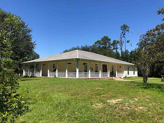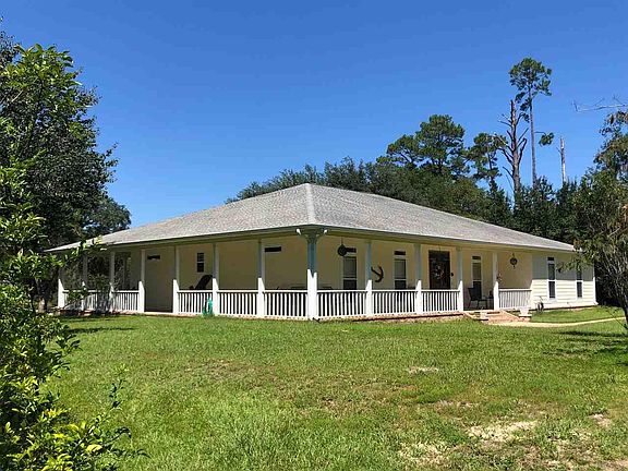 282' WATERFRONT ON BLACKWATER RIVER (easy to Gulf of Mexico by boat) , LARGE BOAT DOCK/LIFT, PRIVATE, CIRCULAR DRIVE, 3 ACRES, 3 GARAGES, 4 Bedrooms/ 2 and 1/2 Baths, 2,362 Sq. Ft. , Custom Home/ Kitchen, pine hardwood floors, private study with French doors, gas fireplace and waterfront Private Master Suite, Large laundry room with half bath, sink, mud room located between kitchen and garage. This Location is wonderful on a cul de sac off Ward Basin Road in Milton only 2 miles from I-10 for easy access to hospitals, shopping, Pensacola, Milton, Pace, & Navarre(25-30 minutes). This is a must see! This home is immaculate and ready for new owner. It is elevated 3 feet (stem wall slab) to prevent flooding. It is one level with open floor plan for living area/kitchen. Many Built ins, high ceilings, wrap around porch all sides! Nice trek boat dock (horseshoe shape) with boat lift for a 26-28' boat, a second slip, lighting, rip rap for dock, and a 3 car garage! This home has nice kitchen / living dining open facing waterfront/dock. The master suite faces water with high ceilings, large bathroom, large walk in cedar closet, garden tub, separate shower and tiled floors. On the other side of the home are the other bedrooms separated by a full bath. The 4th bedroom/ study is in the foyer entrance. This home has like new/gently used beautiful hardwood pine floors, built ins, security system, lovely covered wrap around porch and nice kitchen /living area w island. This house is on an elevated 3' foundation and has never ever been flooded. The property has a spacious steel 14 x 18 garage/storage as well as a large open car port housing lawn equipment, work area, etc. The three car garage is off the kitchen and the entire property is sodded with lovely aged old oak trees with Spanish moss. There is adjoining property currently for sale as well under a different MLS number on same street with approx.3 acres. Blackwater River has direct access to East Bay to Gulf of Mexico!