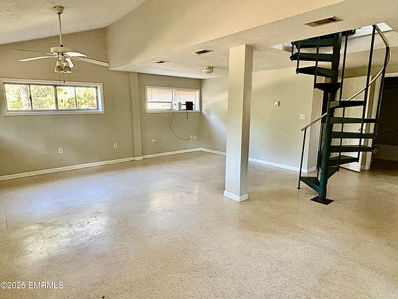 Cottage for rent in West Lauderdale School District. One bedroom downstairs, one loft bedroom upstairs (accessible via spiral staircase or exterior deck stairs). Gas cooktop, refrigerator and washer/dryer provided. There is a deck off the back on first floor, and a second deck off the side on second floor. Credit and background check required.