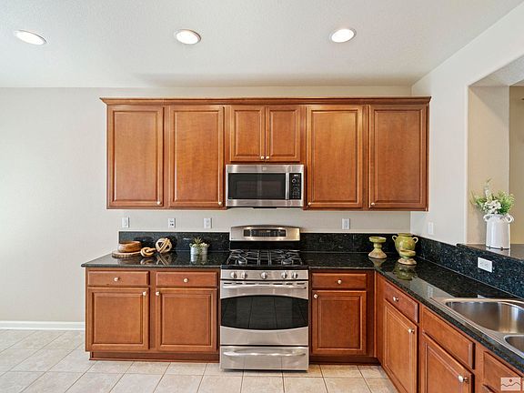 This lovely single-level home in Pioneer Meadows offers a open and inviting living space, conveniently located near shopping, restaurants, and the Red Hawk golf course. The open floor plan makes the home feel spacious and roomy. The large kitchen is a highlight, featuring slab granite countertops, stainless steel appliances, a pantry, and a breakfast bar, along with enough space for a dining table. The backyard is perfect for relaxation, with a roomy paver patio and pergola, ideal for outdoor living., The oversized master bedroom is a comfortable retreat, complete with a relaxing tub, a large shower, a walk-in closet, and dual vanities. Situated in a great neighborhood, this home combines comfort, style, and convenience.
