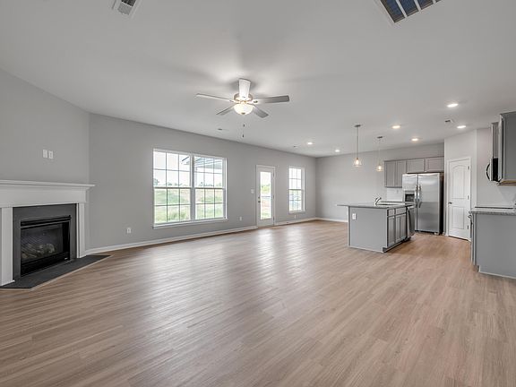 The Bedford Hill, part of the Trend Collection by Ball Homes, is two story plan with a very open first floor layout. The island kitchen offers both a breakfast area and countertop dining, and a large pantry. Granite kitchen counter tops with stainless steel 50/50 under-mount sink and full back splash. Upgrade features also include stainless steel appliances including smooth top range, microwave and dishwasher. The kitchen opens to the family room at the rear of the home. Upstairs are the primary bedroom suite, two bedrooms and a hall bath, plus a spacious loft. The primary bedroom suite includes a bedroom with vaulted ceiling, large closet, and spacious bath with tub/shower, and linen storage. Raised vanities in baths and 12x10 concrete patio.