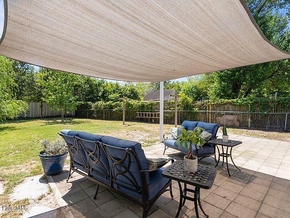 Upgraded, updated, and full of new features, this beautifully renovated 3 bedroom, 2 full bathroom home spans 1,173 square feet and is perfectly positioned on a generous .26 acre lot in the Bent Tree neighborhood-with no HOA to worry about. Inside, you'll find a tastefully updated kitchen with granite countertops, a stylish tile backsplash, sleek stainless steel appliances including a 2024 dishwasher, 2023 stove, and French door refrigerator, plus new French doors leading to the patio, new luxury vinyl plank flooring, and a large pantry for extra storage. Retreat to the primary suite, where you'll find a generous walk-in closet and an updated bathroom featuring a new vanity, toilet, and flooring. Two additional bedrooms offer flexibility for guests, kids, a home office, or play space. Throughout the home, you'll find fresh interior paint (2024), durable LVP flooring, updated lighting, & ceiling fans. The inviting living room is anchored by a wood-burning fireplace, professionally cleaned in 2024 & capped in 2023. Enjoy peace of mind with major systems recently updated or replaced: new HVAC compressor (2023), roof & energy-efficient windows (2018), attic fan (2021), & a comprehensive water treatment setup featuring a whole-house Westinghouse filtration system (owned and serviced in 2023) & a reverse osmosis and softener system (2018). Outdoors, the fully fenced backyard is ready for entertaining or play, with a large patio space, a covered front porch for relaxing, & a new garage personnel door (2024) providing easy access to the yard. Enjoy a prime location just a bike ride away from Olsen Park and minutes from Smith Creek Park, shopping, restaurants, and entertainment. Plus, Downtown Wilmington and Wrightsville Beach are both less than 9 miles away. With tasteful upgrades, recent system improvements, a spacious lot, no HOA, and an unbeatable location, this home offers the lifestyle you've been waiting for. Don't miss your chance-call today to schedule a showing!