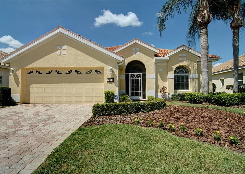 Hurry to see this home before its sold. You will be captivated by the curb appeal with a distinguishing front elevation, tile roof, paver drive and manicured landscaping. The screened front porch leads to a spacious entry with decorative niche. The large living room could easily be made into a den. Enjoy the open floor plan, great for entertaining with a holiday-sized formal dining room, family room and kitchen featuring newer backsplash, stainless steel appliances, abundant cabinetry and solid surface counter tops. The split-bedroom layout offers maximum privacy. Bright, private master suite features a coffered ceiling, crown molding, large walk-in closet, sliding doors to the lanai and a master bath complete with dual sinks, make-up vanity, shower & soaking tub. Did I mention upgraded tile floor on the diagonal is in all rooms except the bedrooms? Plantation shutters, crown molding, coffered ceilings, newly installed high quality wood-like laminate flooring add to the charm. HVAC was replaced in 2015 and Hot water heater in 9/2018. LOCATION, LOCATION, LOCATION!! The highly sought after Mote Ranch community offers tremendous amenities including a junior Olympic pool, fishing pier, playground, babbling brook, waterfalls, walking paths and Kayak launch with low HOA fees of $50/month and NO CDD fees. Only 6 minutes from fabulous shopping at the UTC Mall and 20 minutes from the beaches of the Gulf of Mexico and vibrant downtown Sarasota. Some furniture is available for purchase. Room for pool.