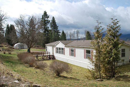Move in ready! Pack your things, this 1782 Sq. Ft 4 bedroom 2 bath manufactured home can be yours! Situated on 5.54 level acres with various rock outcroppings and beautiful valley and mountain views. Easy access off paved county road with city power and private septic. Bring your 4 legged friends, there is plenty of room here, just outside the Bonners Ferry city limits and no CCRs. Home is clean but a little TLC will bring it to its full potential. Separate shop, chicken coop and storage shed on site. Private setting with lots of potential. 20140810 $150,000
