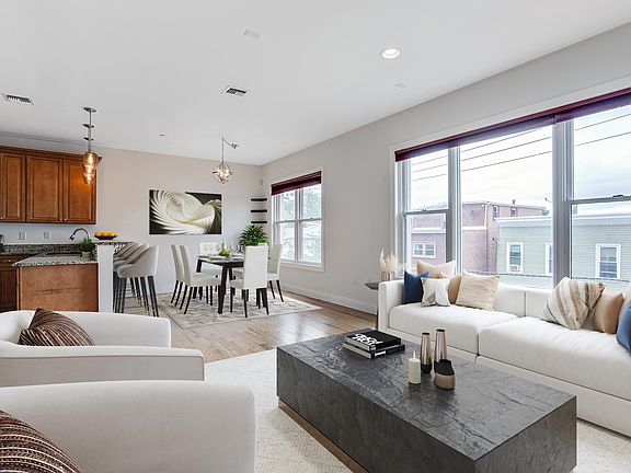 Step inside to discover a bright and spacious layout, highlighted by large windows and high ceilings that flood the space with natural light. The beautiful hardwood floors throughout create a warm and inviting ambiance. The open-concept design seamlessly connects the living and dining areas to a modern kitchen, which boasts ample cabinetry, granite countertops, and stainless steel appliances—perfect for both entertaining and everyday living.