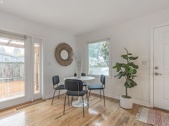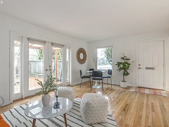 Come see this charming ranch with the perfect open layout. South facing french doors make this home light and bright all day long. This home has fresh interior paint, an eat-in kitchen with bay window, laundry/mud/pantry off the kitchen. Primary bedroom has a bonus room with an exterior door that could serve as a third bedroom, office or whatever your heart desires. Fully fenced corner lot with detached garage on a quiet street. Close to Arbor Lodge Park off-leash dog park and Chief Joseph ES. [Home Energy Score = 4. HES Report at https://rpt.greenbuildingregistry.com/hes/OR10209856]