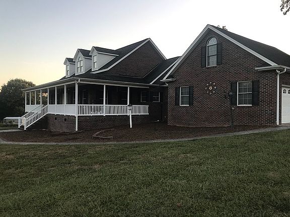 Lovely all brick home situated on just under 8 acres in the George Hildebran area. Rocking chair front and back porches with beautiful views. Master on main with a large walk in closet and jetted garden tub with sit-in shower. A spacious finished basement with storage room and a full bath that provides ample opportunity for an additional bedroom. Main level offers a large great room with a fireplace and cathedral ceilings, Formal dining room as well as a breakfast area. Over sized laundry room with a utility sink. There is a two car garage with bonus room. The yard is large and well maintained with mature trees. There is also a storage building. This home is situated perfectly on a large private lot set back away from the road by a long paved driveway. Just 15 miles from Hickory and i40, enjoy the serenity of the country with easy access to amenities! This is a must see home!