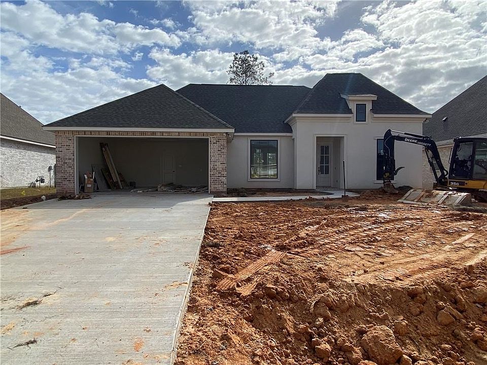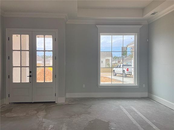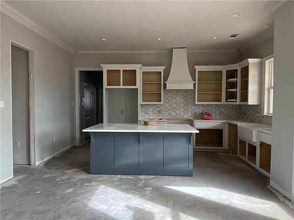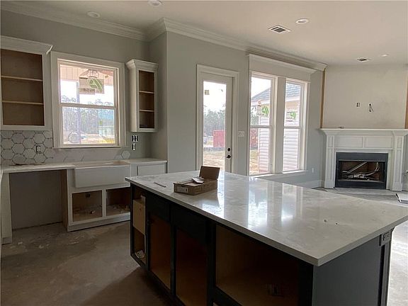 This new KPM Construction home will be finished in a few short weeks! 3 bedrooms/2 baths; office; large dining room; corner FP in den; beautiful kitchen with custom hood, contrasting island; farm sink; quartz countertops; tray ceilings in dining & primary bedroom; fabulous primary bath; wood floors in living areas + primary bedroom; mudroom area; brick covered patio. Flood zone C; subd junior olympic size pool & clubhouse; soccer field; great school district.