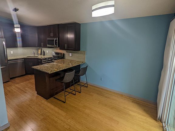 Beautiful, updated end unit townhome w/lots of green space. Very open floor plan, vaulted living room, large updated master with new walk-in closet, gorgeous newer (all custom) on main total kitchen remodel, custom maple cabinetry, upper end appliances, granite. Huge deck with private feel, walkout lower level to nice size patio. Lower level bath has just been removed, so easy to custom a new bath. Walk to park & trails. Lower level partially finished.