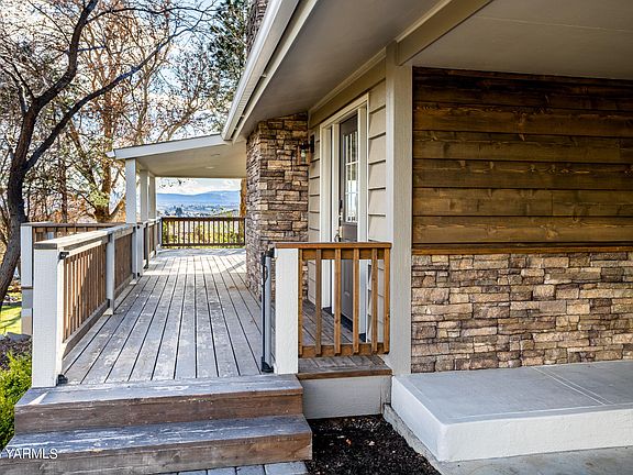 Relax and enjoy the privacy and unobstructed views afforded on the park- like .52 acres, found at the end of a quiet cul de sac, and the setting for this beautiful 4 BR/3 BA West Valley home. In 2019, the home was tastefully rebuilt and remodeled, creating a spacious open concept living/dining/kitchen area, which is enhanced with walls of windows taking advantage of the beautiful view of Mt Adam. This deck off this great room area has a barbecue hookup and is a gracious outdoor space to enjoy and entertain. The tiled gas fireplace grounds the room and adds warmth and ambiance. Features of the sleek kitchen include white cabinetry, leathered granite counters,stainless steel appliances and a 5 burner Italian gas range. Go down the hall to a guest room, hall bath and the primary ensuite which also has views of Mt Adams and opens out onto the deck. The primary bath has a spacious tiled and dual headed shower. A custom closet completes the master ensuite. Downstairs there is a large lower-level family room with a gas fireplace and large windows. There are doors opening off the family room and the NW bedroom to the yard. Also downstairs you will find a 4th bedroom, plus an in-house office or storage room, and the 3rd bath. The home, has a Simply Safe Security System with motion detectors, door sensors, along with 2 cameras and 2 pin pad keyless locks.In 2019 when the home was taken down to the studs, the redo included all new wall insulation, new interior walls and doors, a new kitchen and baths, vinyl windows, lighting and flooring (Carrera marble, tile and high end flooring), pex plumbing, the furnace, electrical panel and hot water tank.Decks and soffits were rebuilt at this time and since then, the west facing deck has been expanded. Outside the home has a sprinkler system and over 200 square feet of raised beds. The yard has largeshade trees as well as an apple, cherry and an apricot tree.