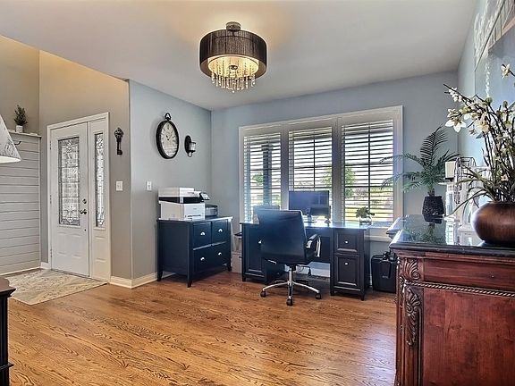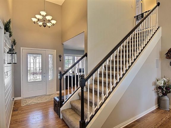STUNNING 5BED/4BATH 1.5 STORY WITH FINISHED BASEMENT! Style & Elegance combine with all the updates and trends you are looking for! Hardwood floors, Built in surround sound, 14 FT ceilings in Foyer & Great room, wood burning marble Fireplace flanked with windows and custom shutters! The Light, Bright Kitchen boasts granite, glass backsplash, separate desk area & all appliances! Large main fl master suite with master bath! 4 additional beds up are generous size! The finished basement boasts wet bar, 2 bar fridges, tankless hot water heater, back up battery sump pump, look out windows, bathroom and large family room! The AMAZING BACKYARD features a HUGE STAMPED CONCRETE PATIO & CUSTOM STONE PONDLESS WATERFALL! Perfect for entertaining large groups or simply relax to the sound of water! AC less then one year old, 5 zoned heating and Air! Beautiful Sauna, New Carpet! SO MANY AMENITIES!