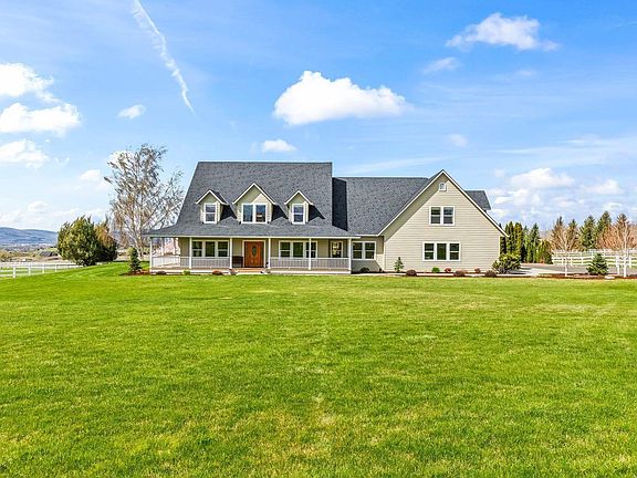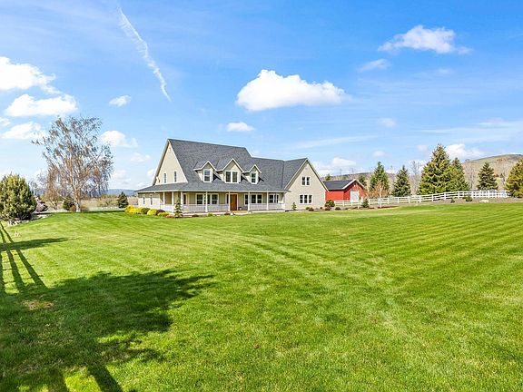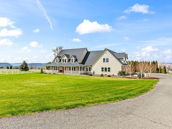 MLS# 283363 Welcome to this stunning 5-bed, 4-bath custom farmhouse built by Rick Swanson, set on 7.51 irrigated, fully fenced acres. Enjoy spacious living with two suites—one on each level—perfect for multi-gen living. The great room features a Montana stone fireplace with fossil accents and custom African Mahogany built-ins. A chef’s kitchen, bonus room with surround sound, and views of Mt. Rainier and Adams complete the interior. Outside offers a 40x60 solar-equipped shop, sports court, custom pergola, hot tub area, and horse setup. 50-year roof installed in 2011. Truly a rare find!